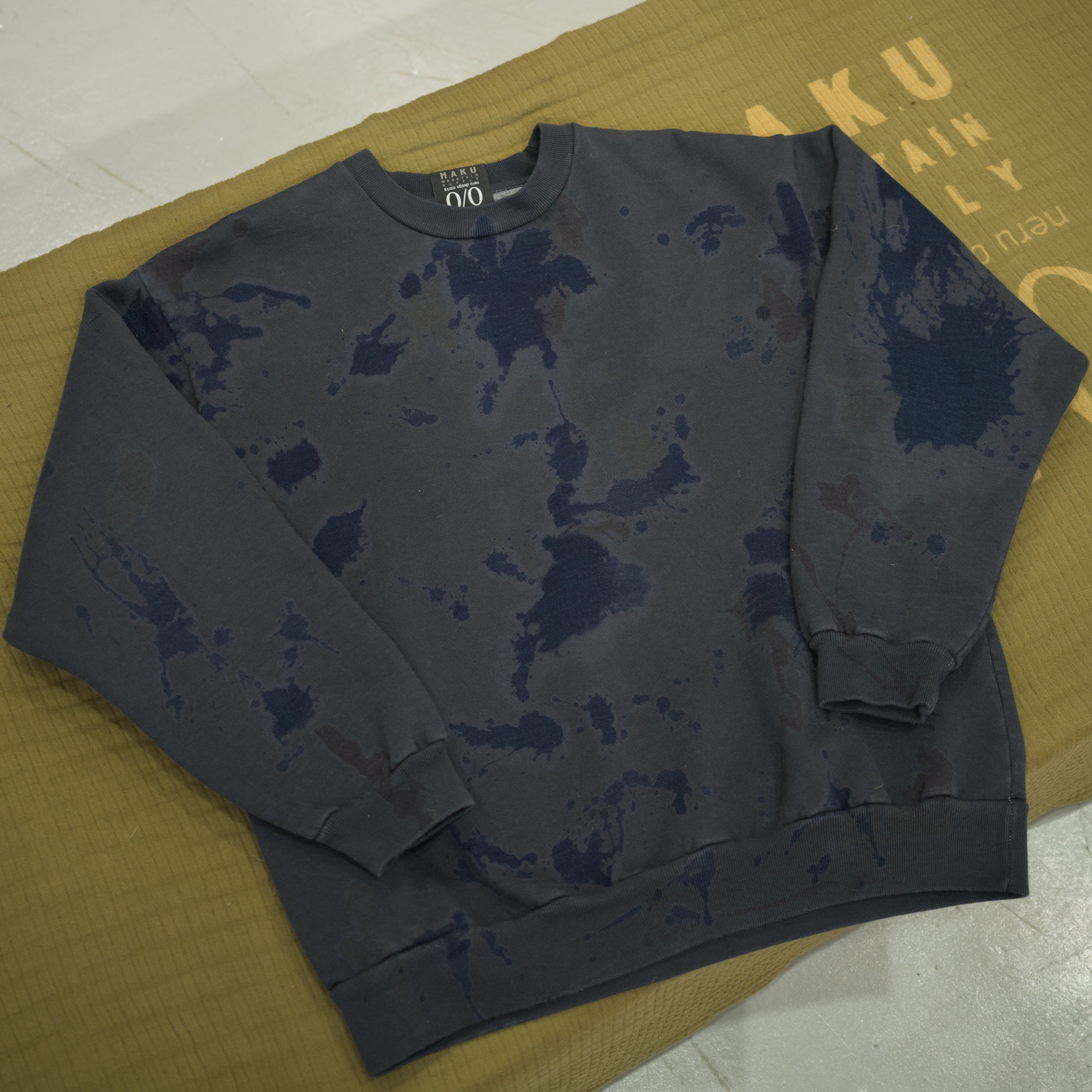 一枚ずつ手作業で染めるため、染め上がりも異なるH.A.K.U mountain suplyとnerudesignworksのコラボスウェットです。
