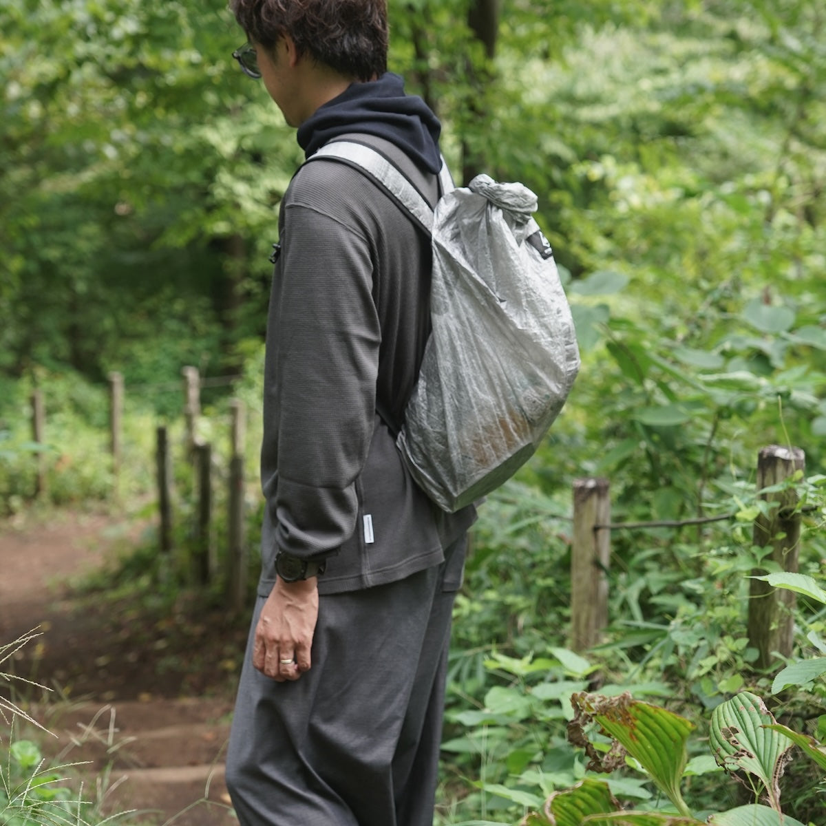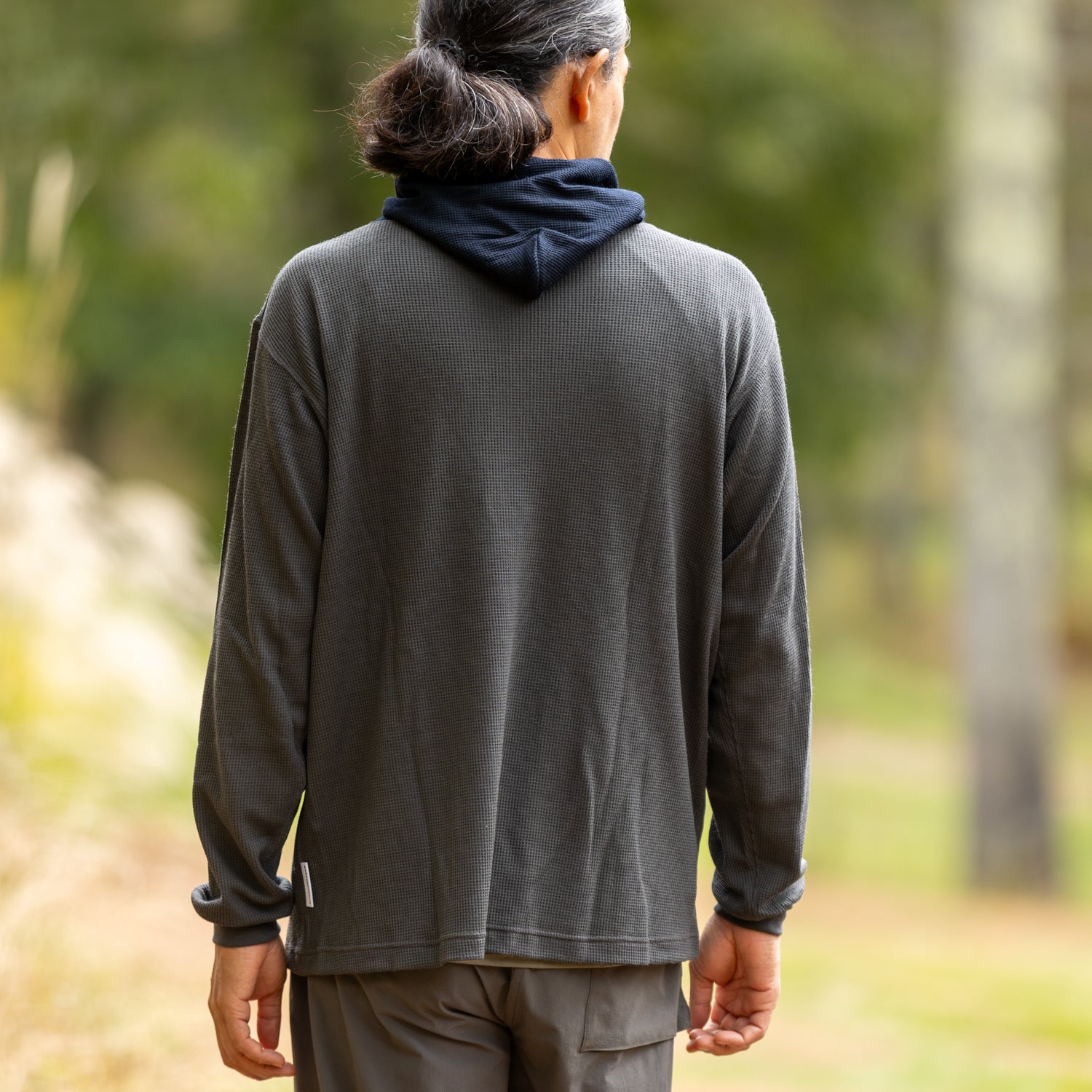バンブーシュートの甲斐さんとはPre Tentsをきっかけに一緒に山に登ったりしたご縁もあり、アパレル2アイテム、BSSの小物3アイテムを別注させいただくことになりました!シンプルでゆったりしたシルエットなのでベースレイヤーとしても一枚で着られるようになっています。