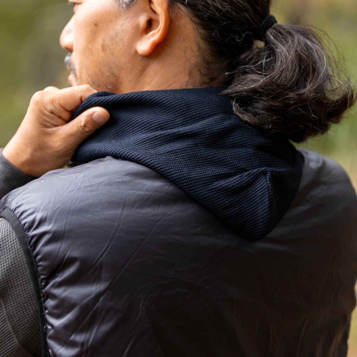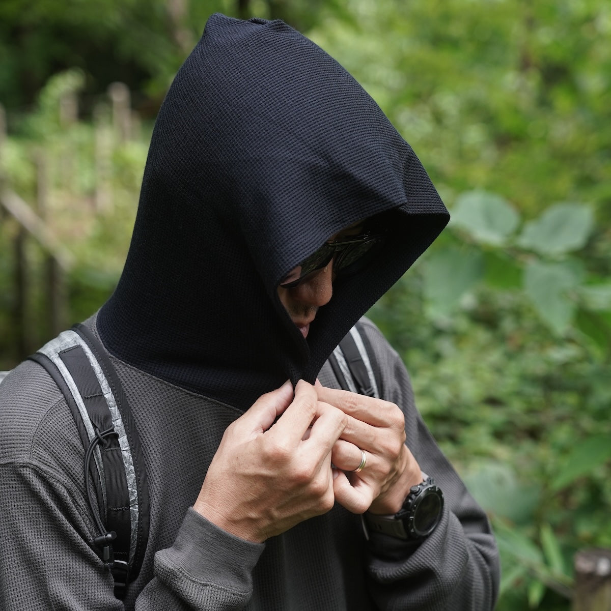 レイヤードの幅を拡張できるフーディ仕様のベースレイヤー。MERINO WOOLとCOOL MAXの混紡で快適さを実現。
