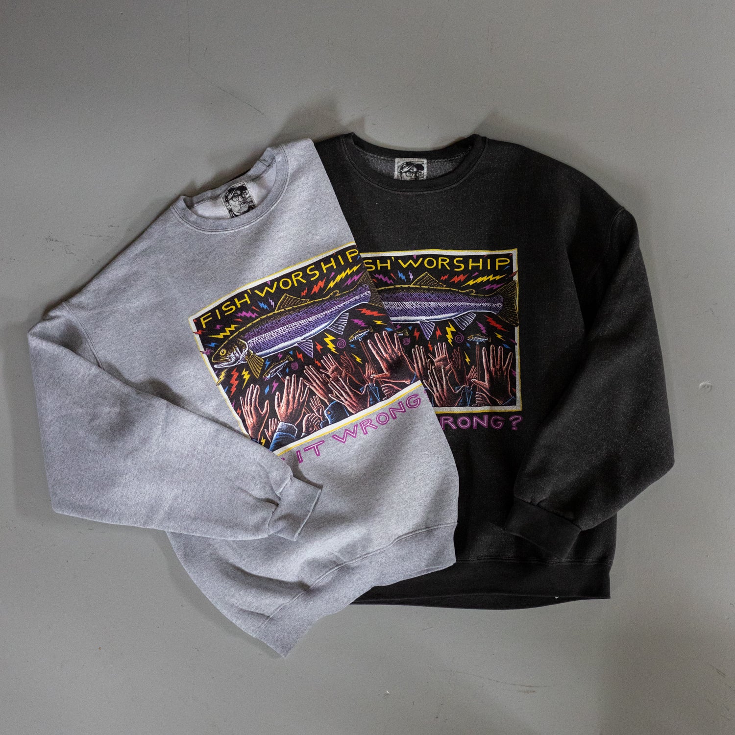 たっぷりめなオリジナルボディの裏起毛スウェットに過去のアーカイブから厳選したアートワークを大胆にプリントしています
