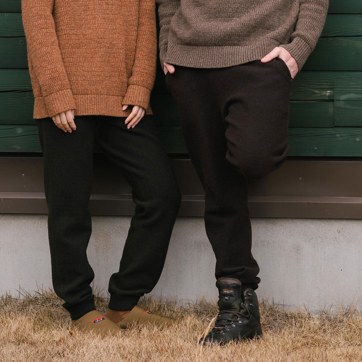 「楽でずっと履きやすい」を追求して作った、リサイクル素材をメインに使用したウールニットパンツです。