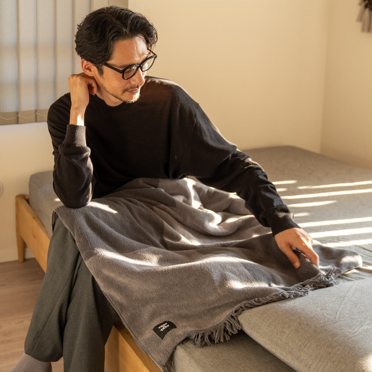 一般的なスローは、ウールやコットンを素材としたものが多い中、TARP THROWは上質な”今治タオル”を使用しました。