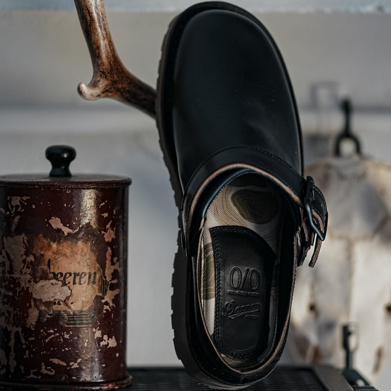 アッパーはホーウィン社で製革されたクロムエクセルレザーを使用し、ソールは別注カラーのVIBRAMソール。インナーにTOPO カモ柄をさりげなく配置したサンダルです。