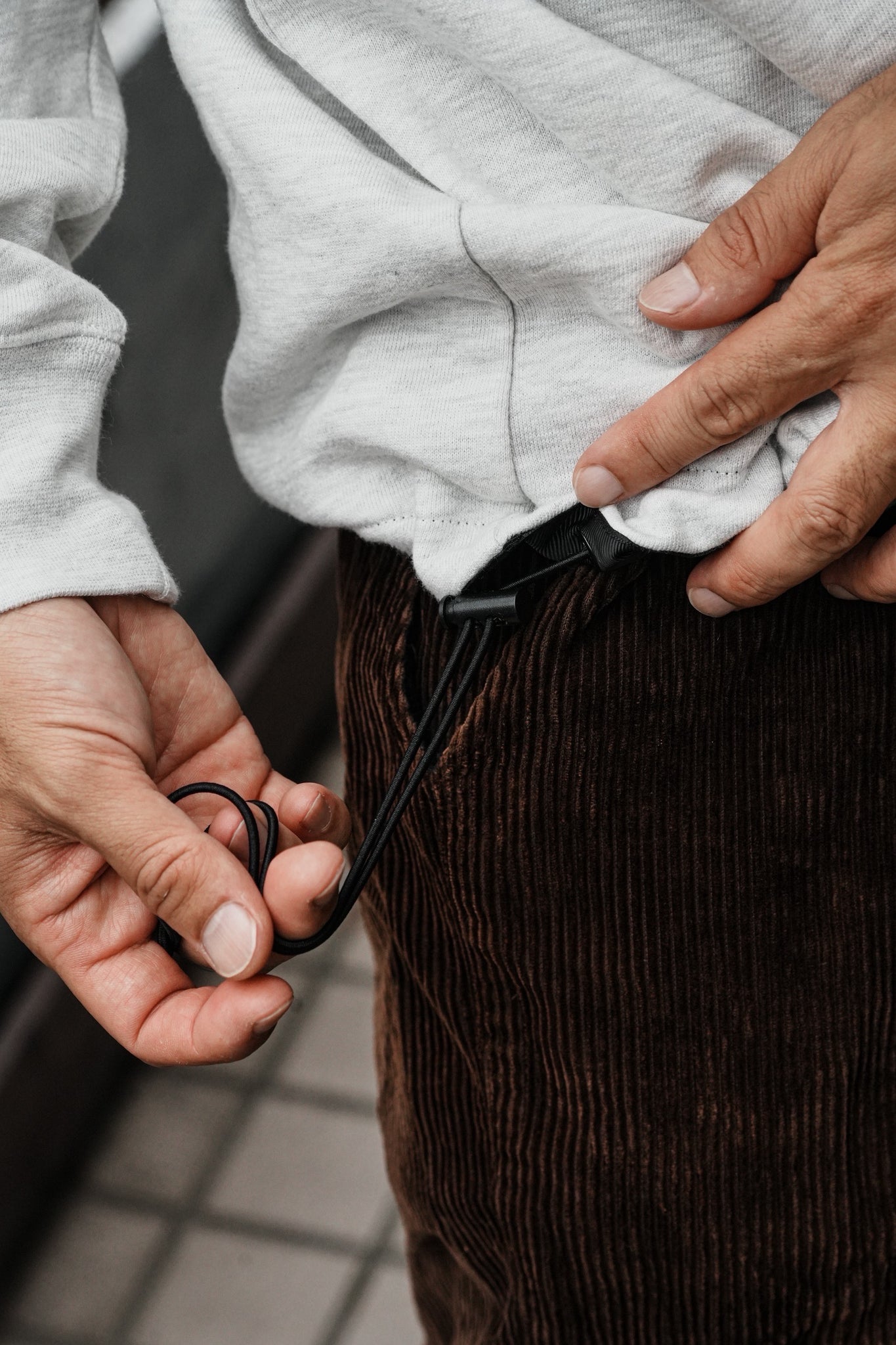 裾にドローコード、ポケット付き!