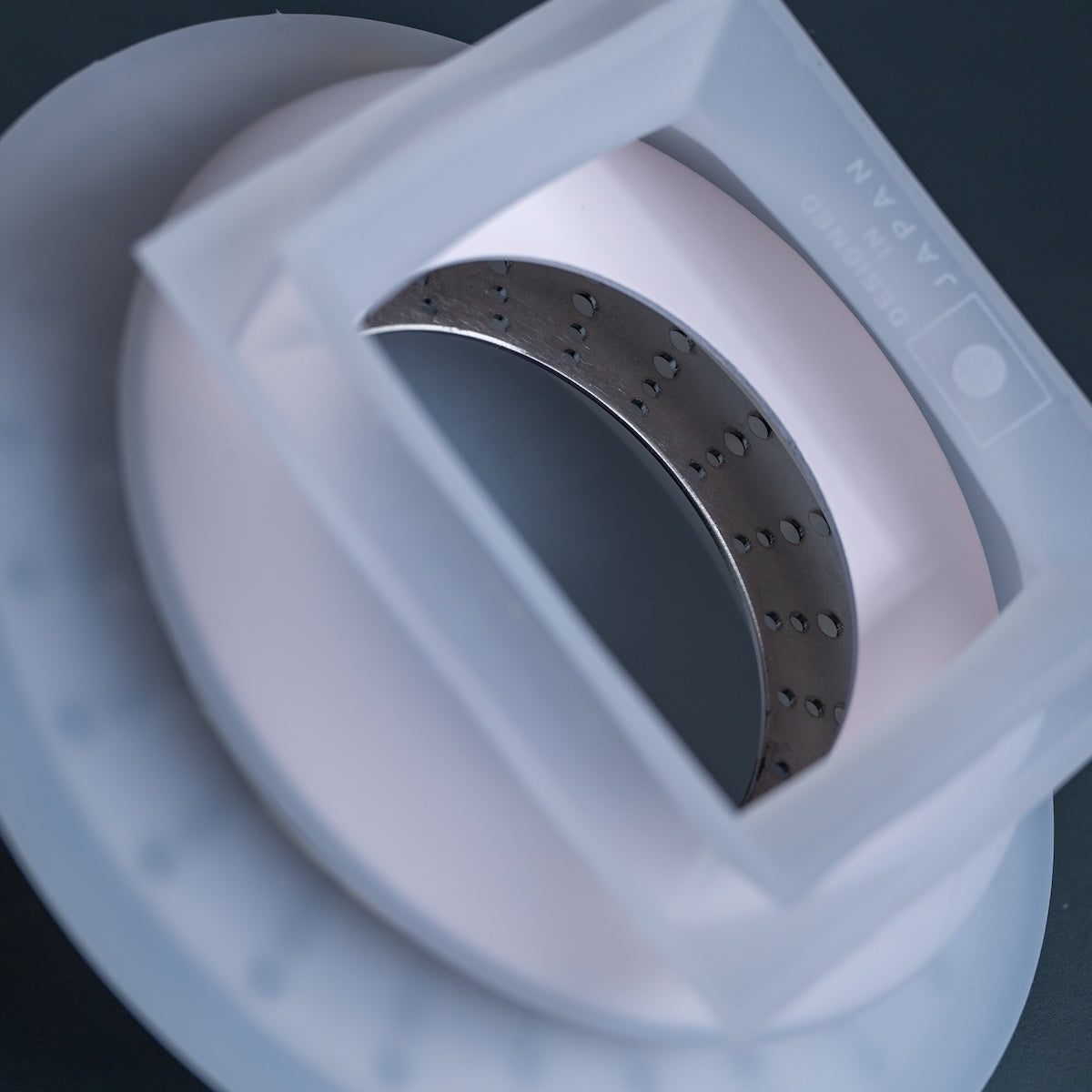 本モデルは、やわらかな光を生み出すシリコンシェードに、ステンレス加工パーツを組み合わせた異素材仕様。