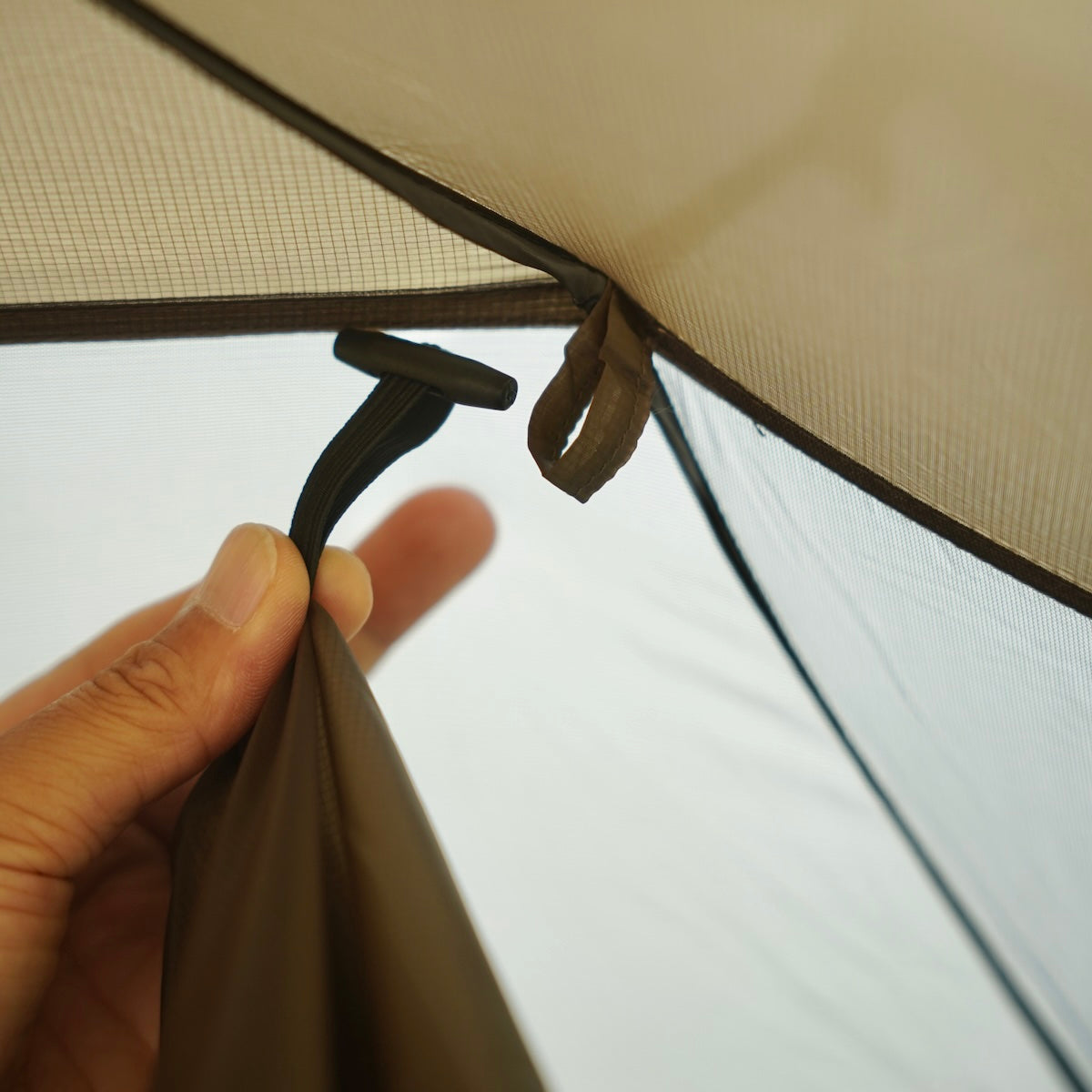 メッシュインナー内側のフックに、トグルで引っ掛けて使用可能。